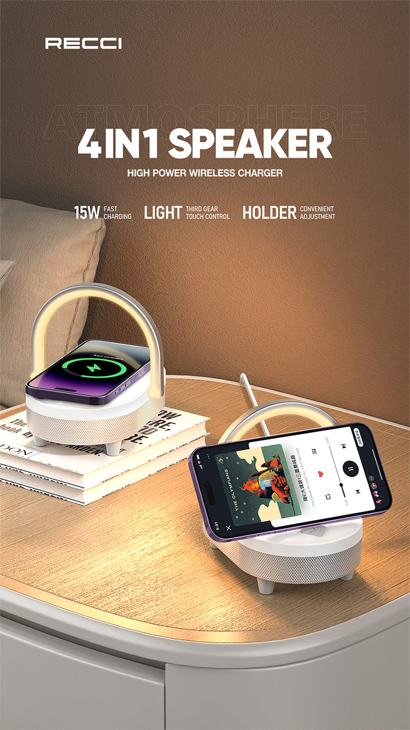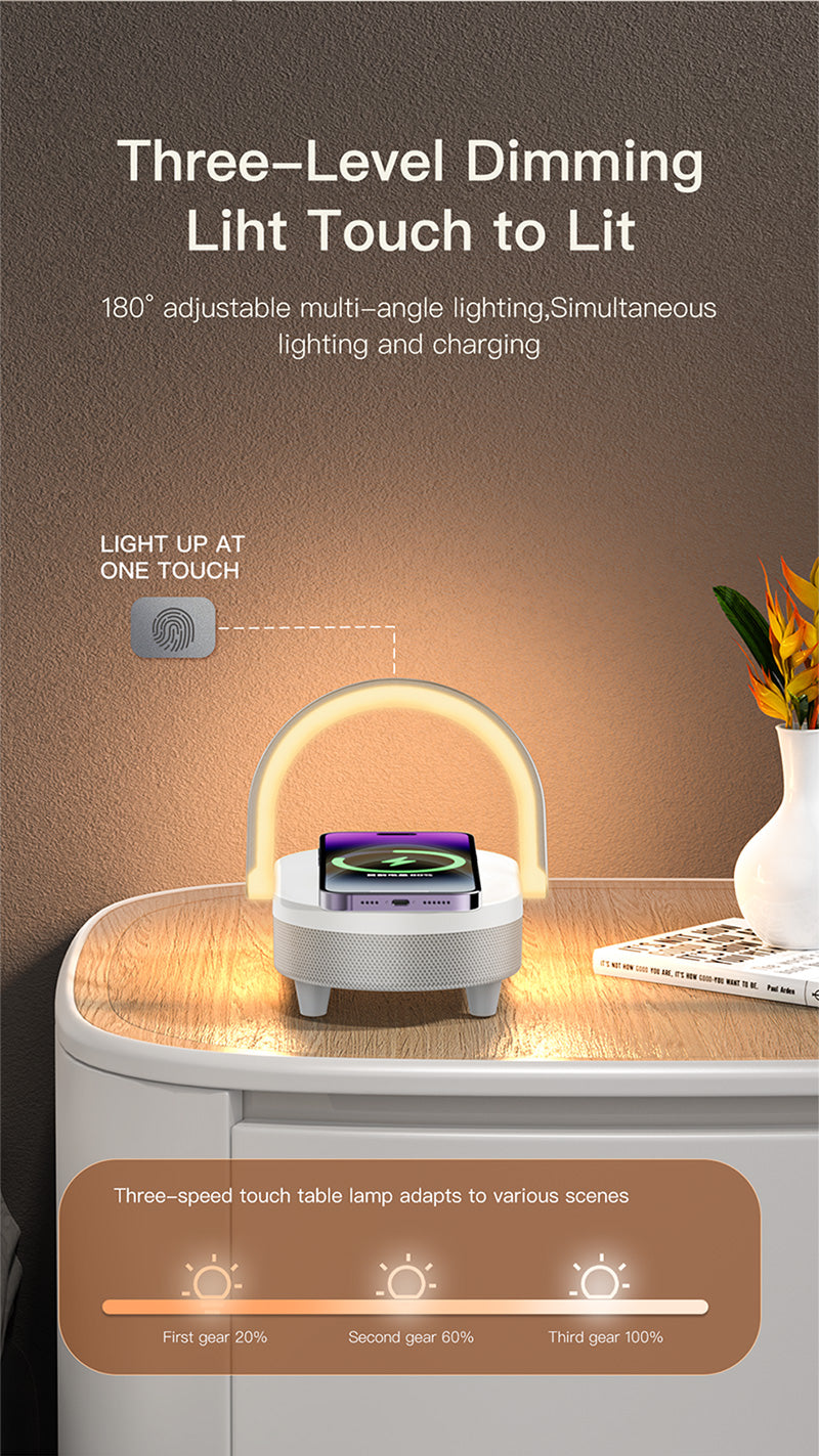 شاحن لاسلكي اضاءه ليد مكبر صوت حامل هاتف -